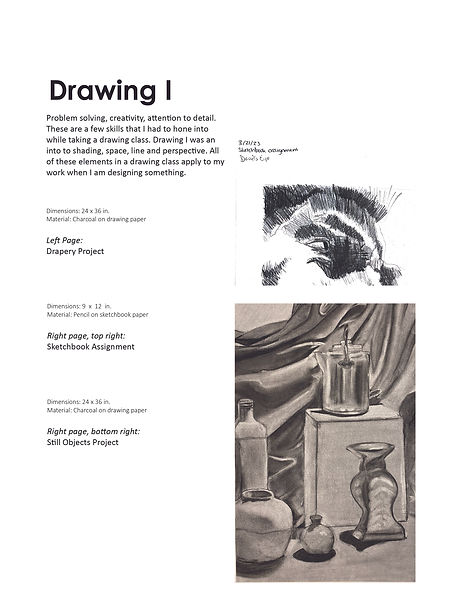 Understanding 2D, 3D, line, shape, form, negative and positive space, contour, value, composition, perspective and proportion are the very foundations of any type of art. Check out my creations that I took in the beginning of my education in the art field. I have always loved painting and drawing but furthering my understanding of what goes into a professionally done piece helps me create and enjoy this type of work even more!